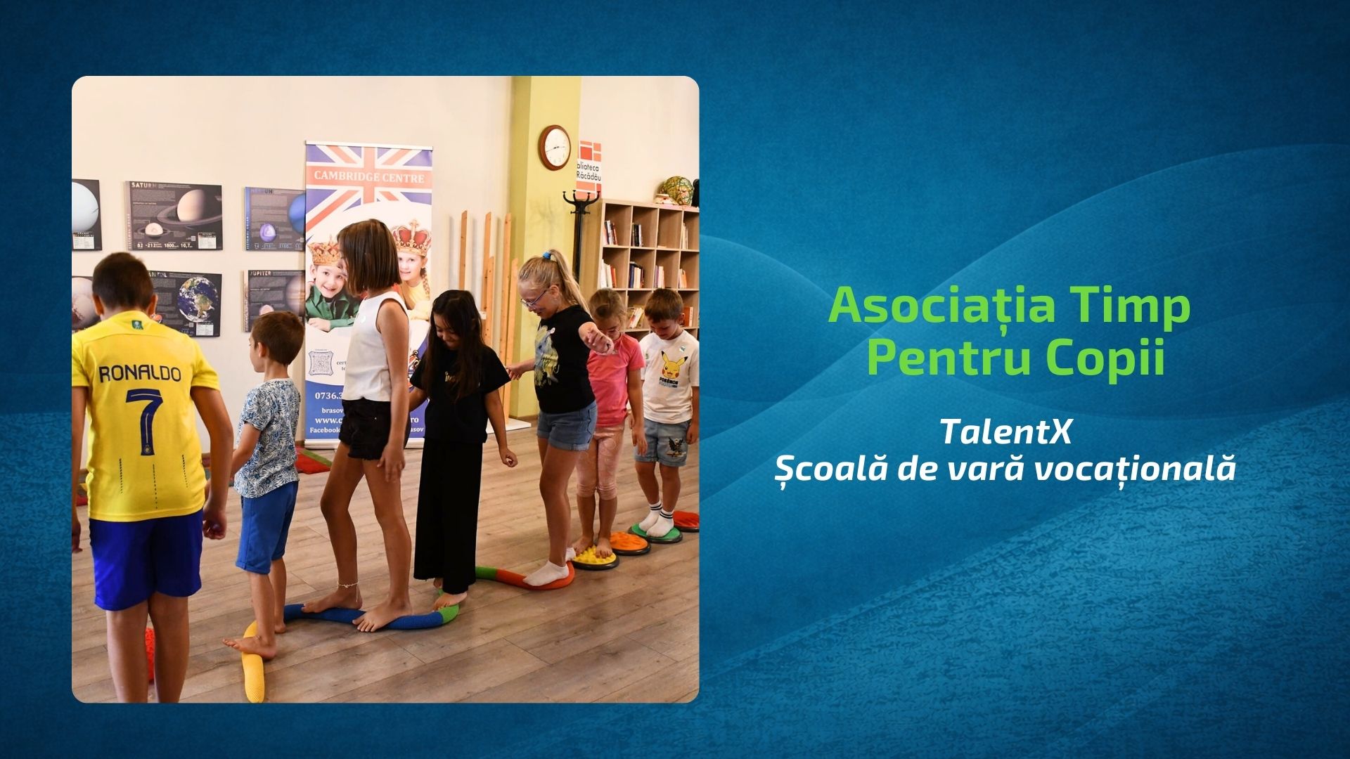 Proiectul TalentX - Școală de vară vocațională se va desfășura între 6 și 31 iulie 2026, la Brașov, la sediul Asociației Timp pentru Copii și în locații partenere sigure pentru copii. Activitățile sunt organizate pe 4 săptămâni tematice: